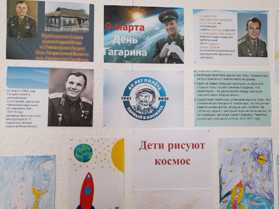 Учащиеся школы приняли участие в марафоне «Первый в космосе», посвященном Дню рождению Ю. А. Гагарина. В рамках марафона в школе оформлен стенд «9 марта – День Гагарина», в классных коллективах прошли тематические часы общения, выставка рисунков «Дети рисуют космос», выставка книг «Звезда по имени Гагарин». | |